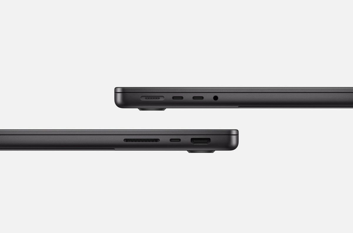 Interface: 3 Thunderbolt 4 (USB-C) – HDMI – Conector mini jack 3.5 mm – Slot para cartão SDXC – Porta MagSafe 3